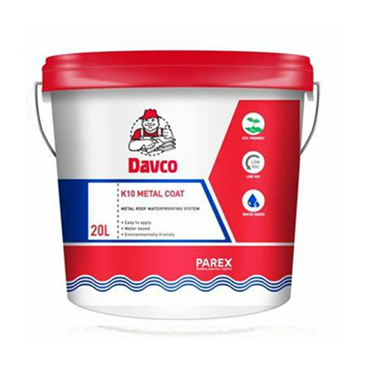 Davco K10 Metal Coat is a premixed flexible acrylic waterproofing membrane that can be applied directly from the pail.